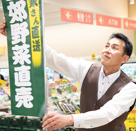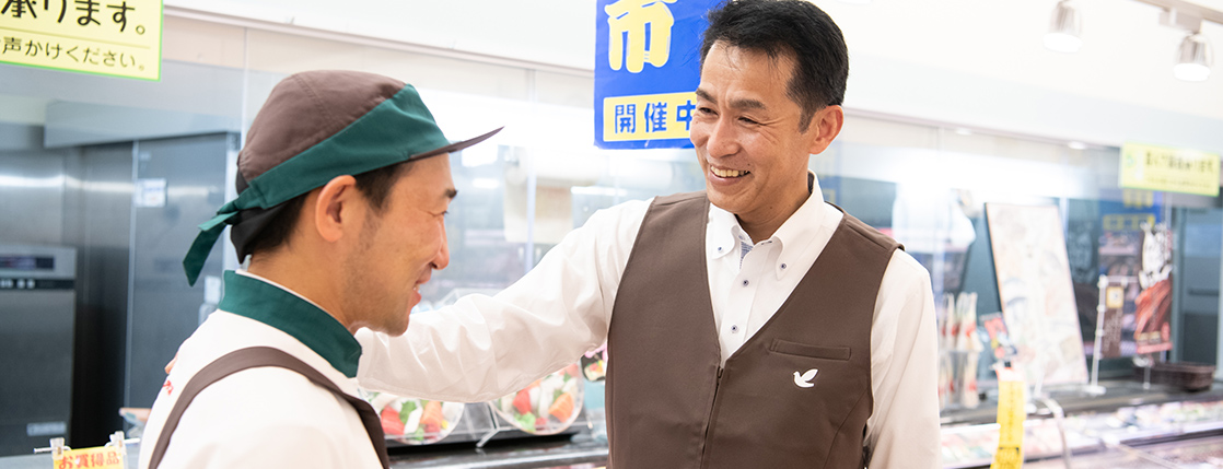 スーパーマーケットの店長という仕事にはたくさんの要素が絡み合います。中でも私がこだわっているのは「人」です。店長にはお店の先頭に立って売上を伸ばし目標を達成していくという重い責任がありますが、その目標達成に向けた道筋を考える時、私が真っ先に考えるのはいつでも「人」なのです。